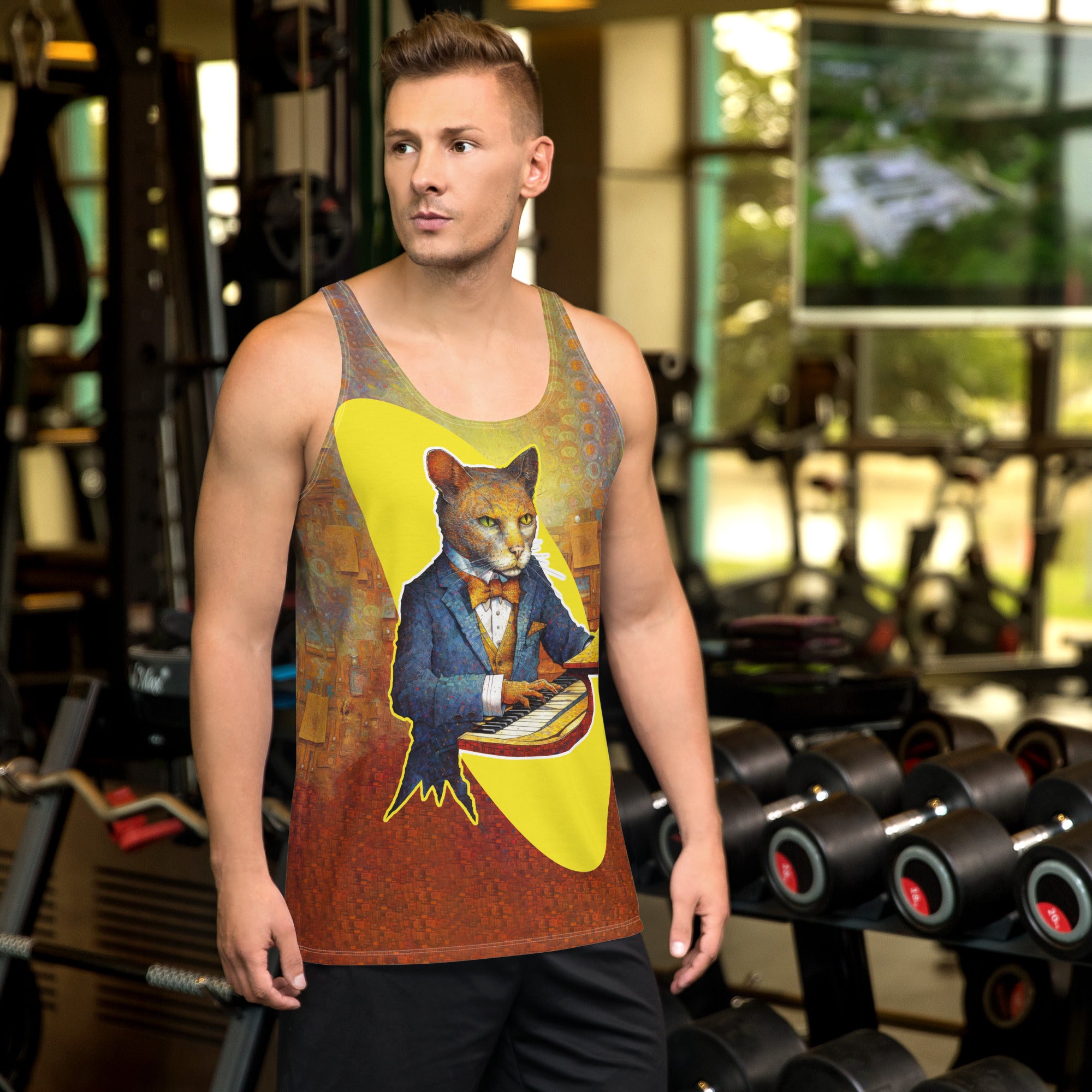 Discover elegance with our "Cat's Elegance" All-Over Print Men's Tank Top. This design features an elegant humanized...