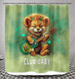 Enchanted Lion Eyes shower curtain featuring a captivating gaze in a vibrant bathroom setting.