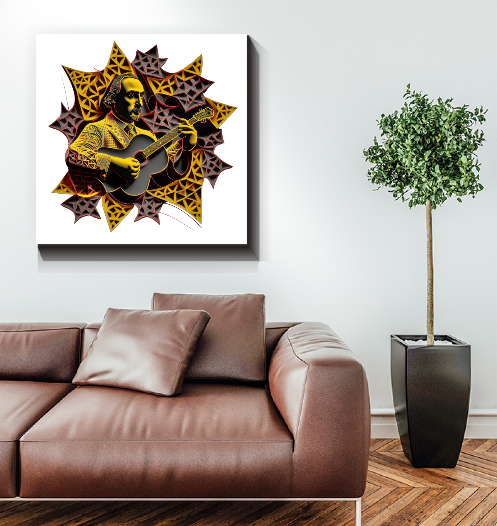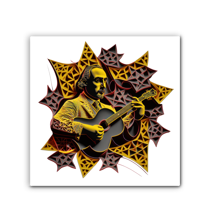 Offering a serene musical escape, this canvas symbolizes the peaceful coexistence of nature and melody.
