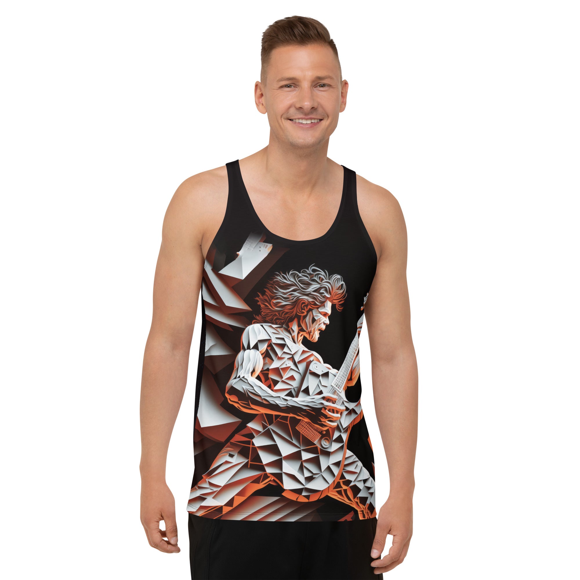 A sophisticated tank top adorned with violin and bow graphics, echoing the elegance of a symphony orchestra....